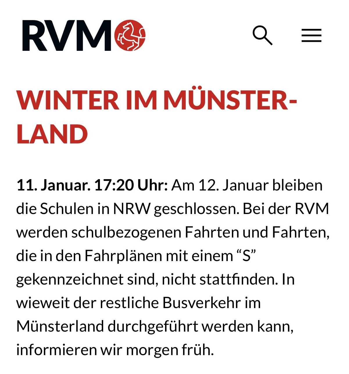Wichtige Information zum Schulbetrieb am Montag, 12. Januar 2026